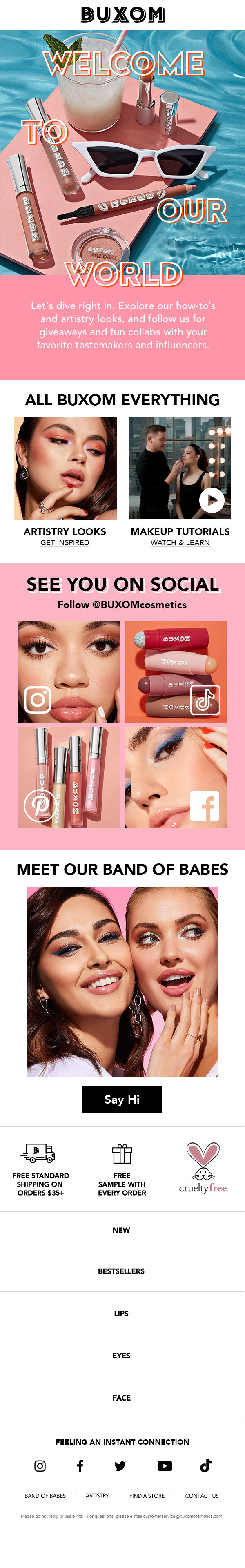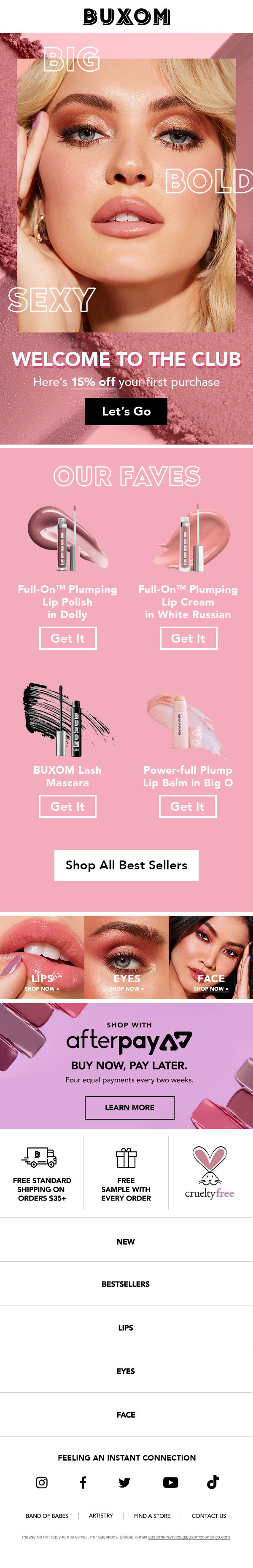As a small, energetic brand founded in 2006, Buxom needed an updated look and feel to reflect its “Big, Bold and Sexy” tagline. We created an evolution in the same framework : “Fun, Fierce, Forward”, and refreshed the brand guidelines to bring a colorul, expressive, and inclusive direction from lighting to casting.