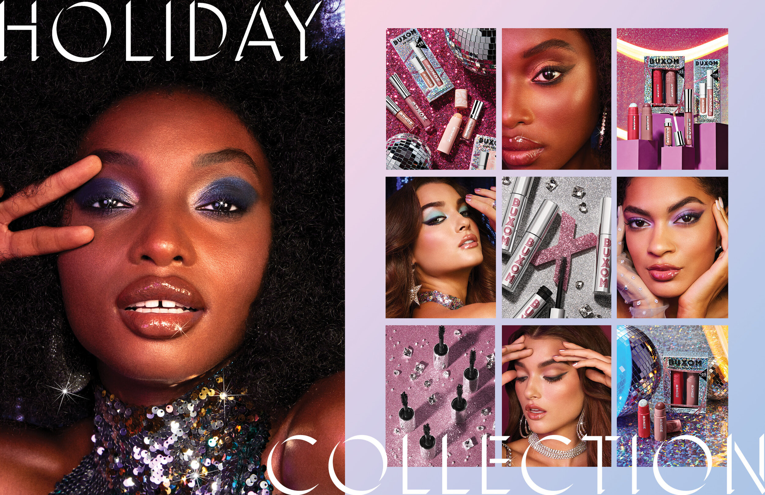 Buxom goes roller disco for holiday season with a fun, campy nod back to the days of sequins, neon lights, and bold makeup looks.